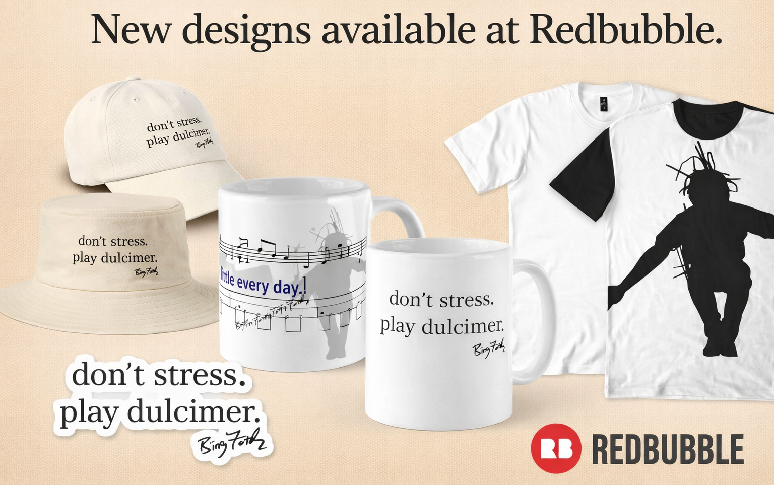 Your requests have been heard: we have mugs, hats, t-shirts, and more in the new Redbubble store! Be sure to click “shop all products” to see the current collection.